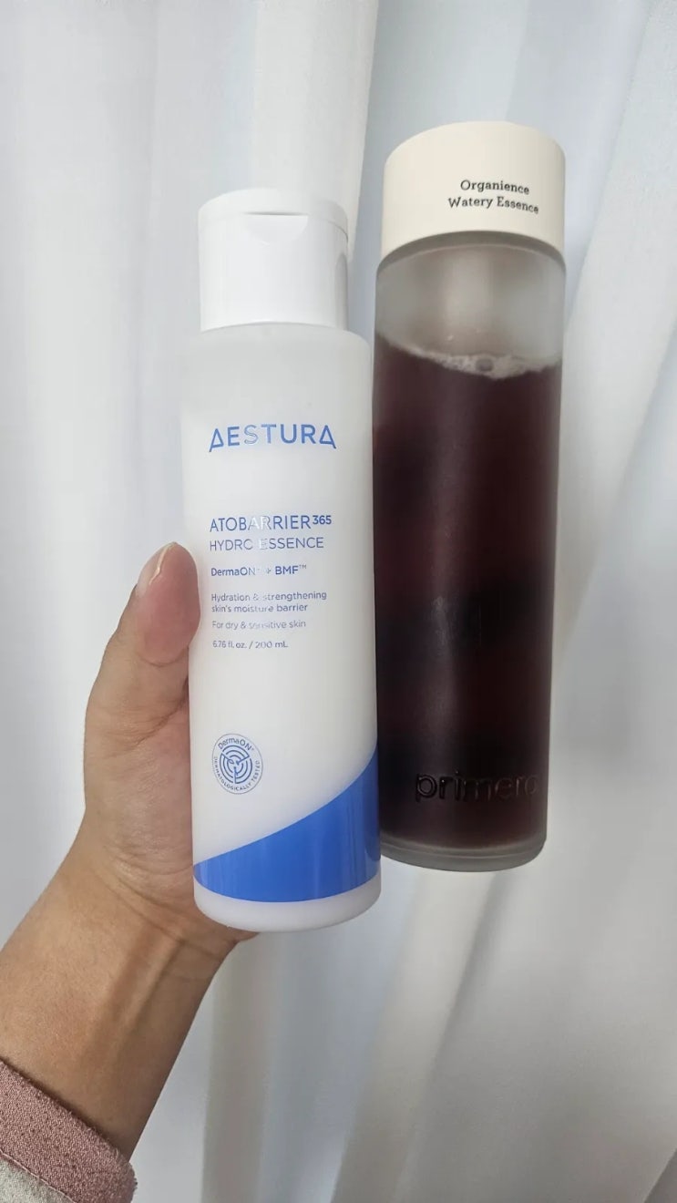 [프리메라 오가니언스 워터리 에센스/에스트라 아토베리어365 하이드로 에센스] 울긋불긋 화난 피부를 진정시키는 에센스 추천!