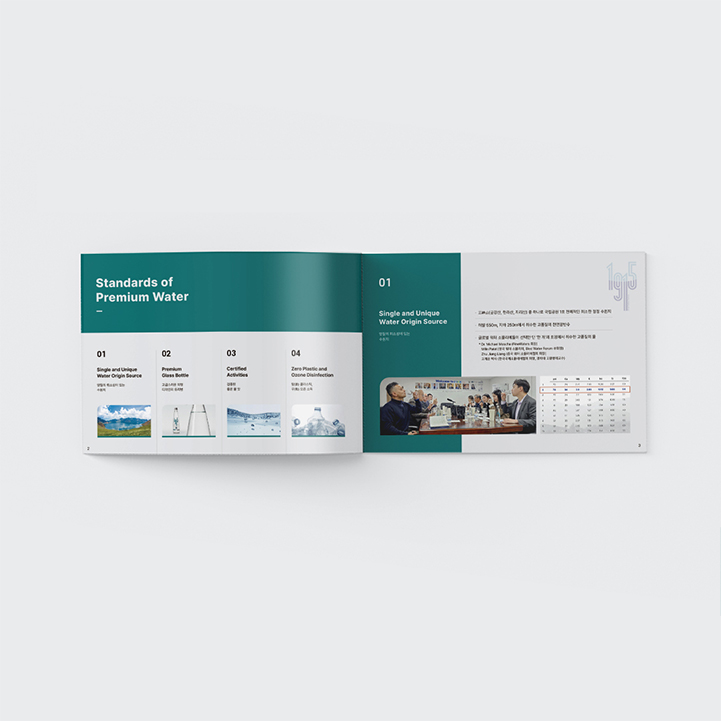 프리미엄 생수 홍보 브로슈어 디자인 심플하고 고급스럽게 제작