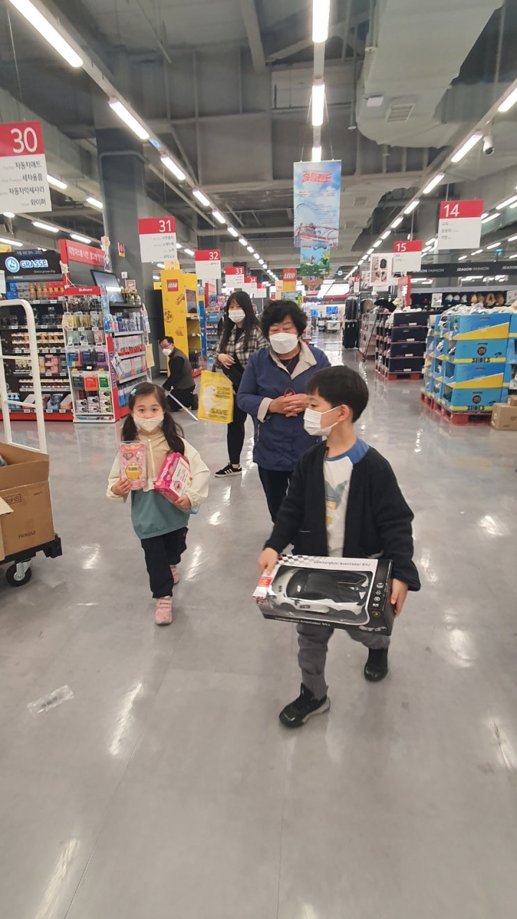 22.05.05 석영11세 석주9세 서연7세 외할머니의 홈플러스선물!! 석영이는 야구때문에 같이 못가고 현금으로...