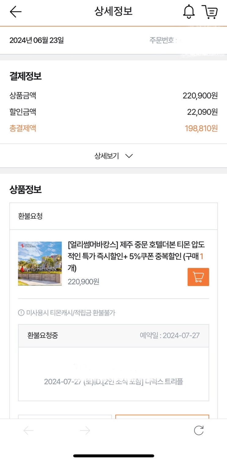 티몬 환불 취소 여행사 선민투어 제주도 숙소 예약 불안