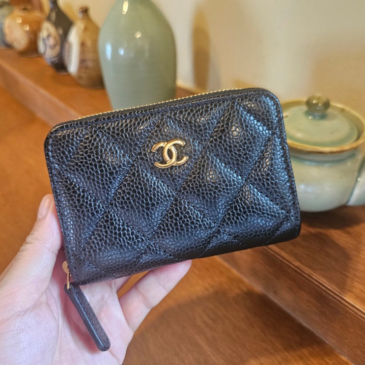샤넬 클래식 지퍼 동전 지갑 일명 샤넬 지퍼돌이!! 매장 갈때마다 유색은 몇번 봤는데 블랙 캐비어는 재고...