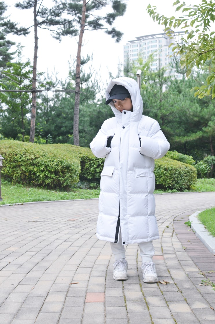 탑텐 키즈 롱패딩 화이트 넘나 예쁜것♡ 100, 110사이즈 비교