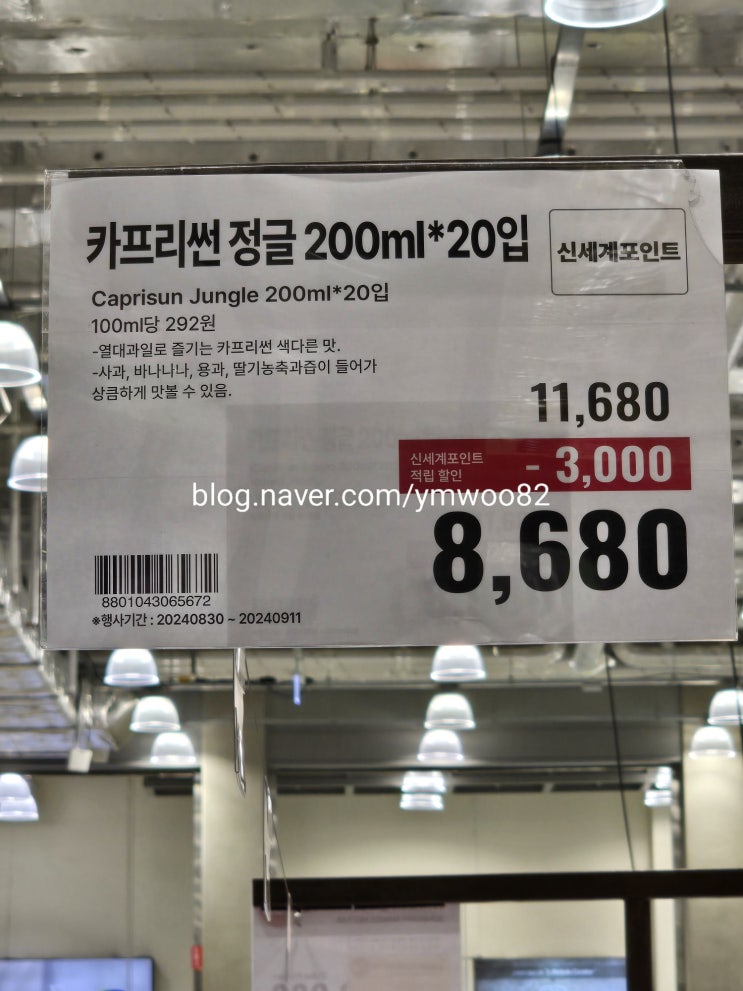 30일 오늘부터 할인 카프리썬 정글 8,680 카프리썬 오렌지 8,780 카프리썬 오렌지망고 8,780 농심 짜파게티...