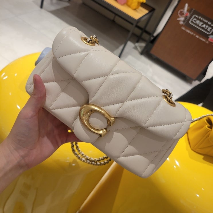 더로랑 하프문 박스백 : 아쿠아글라스 퀼팅 & 리본체인 ?