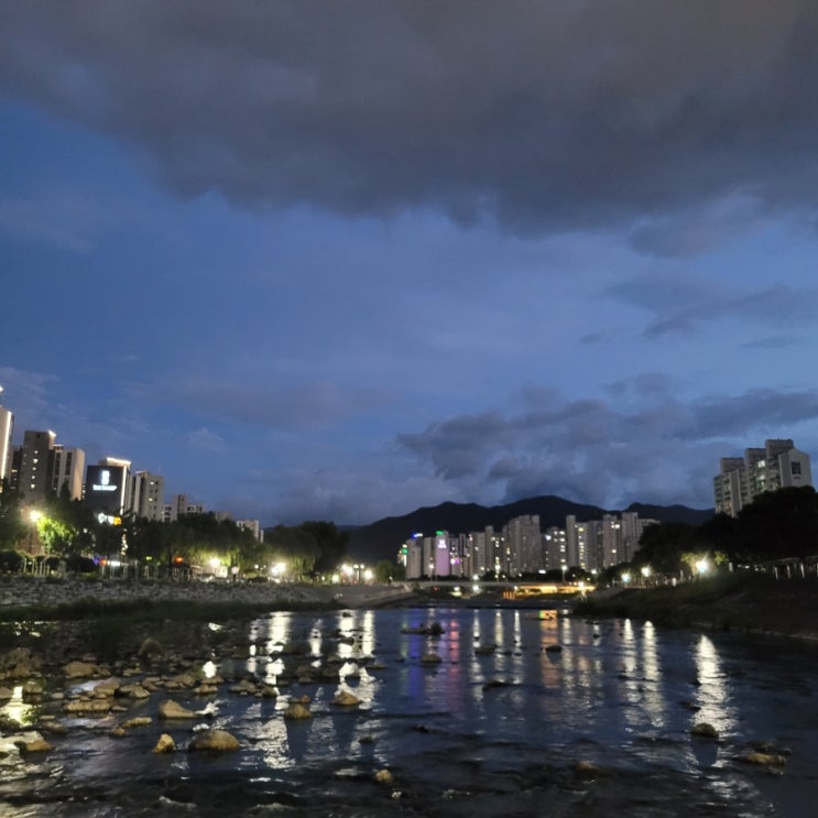 러닝 237일차 저녁 8시 무렵 신천 근처 온도가 29.8도로 기록판에 나온다. 확실히 바람이 부니 30도 아래로...