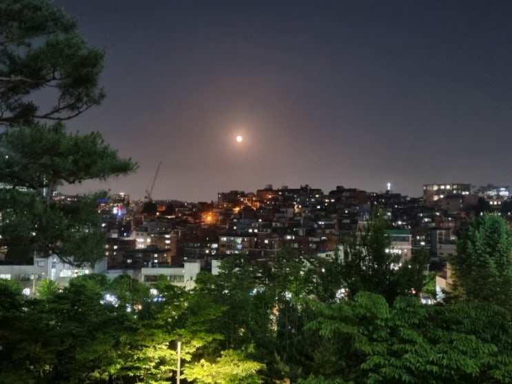 베란다에서 한 잔 하면서 바라 본 서울 밤하늘에 보름달이 둥실 떴다. 그 아래 다닥다닥 모인 집들도 밤풍...