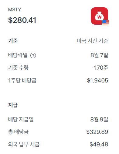 초고배당 ETF, 월배당_재테크 MSTY 매수. - 8월 배당 받고, 나의 의견