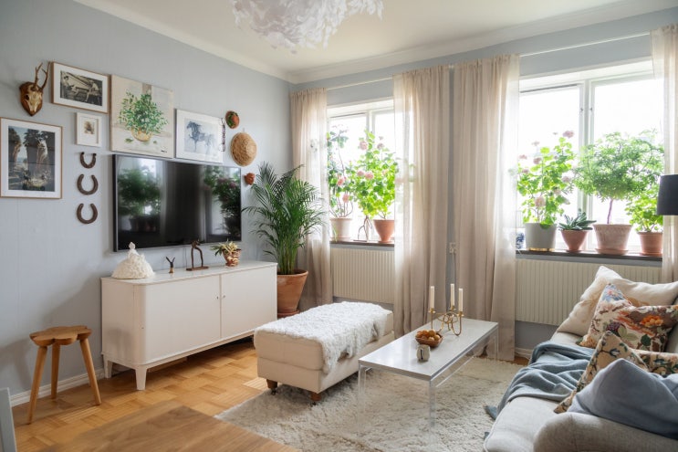 13평 소형 아파트 차분하고 화사한 화이트 우드 인테리어 오브제 장식은 맞춤 월플렉스에 많은 듯하지만 미...