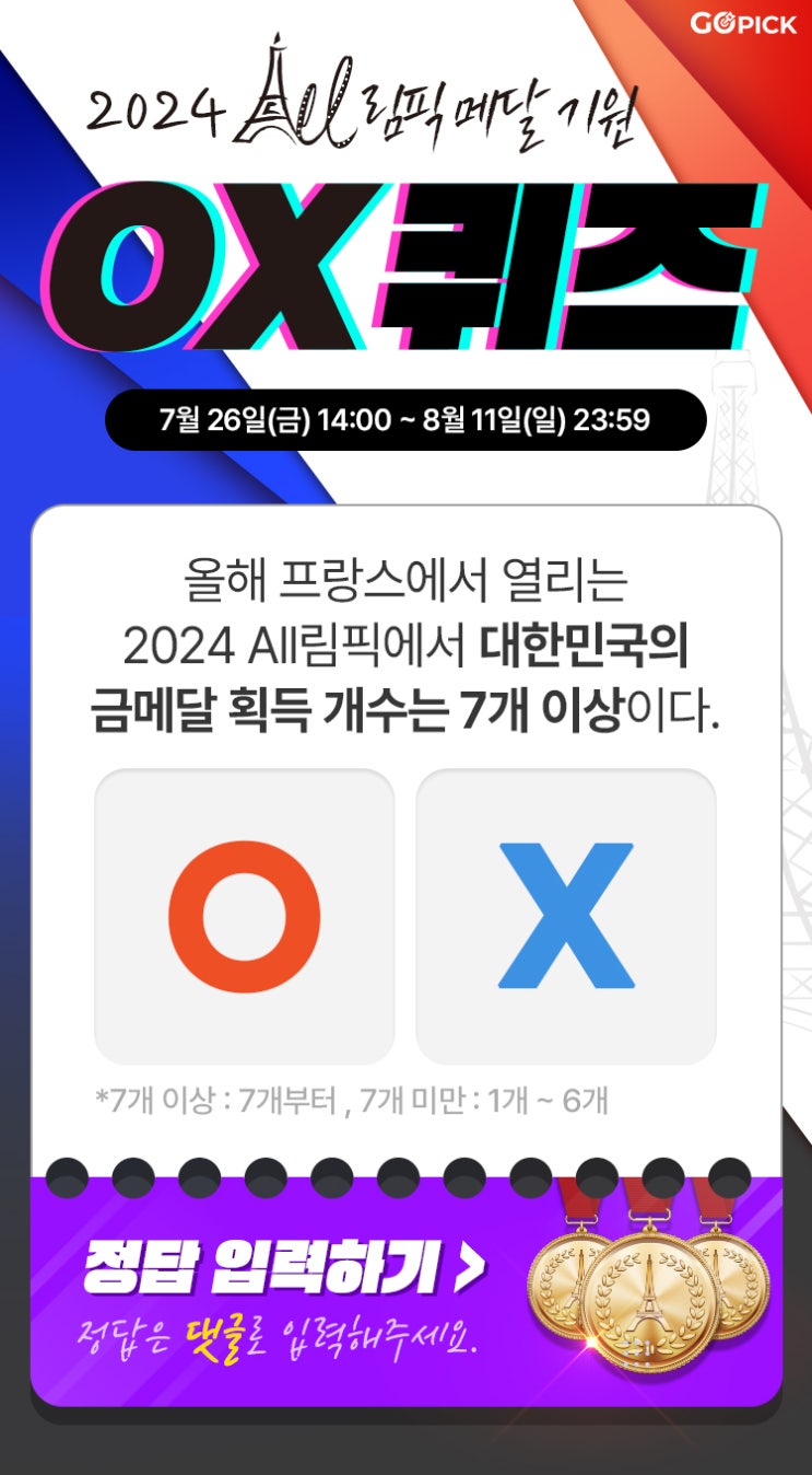 고픽 2024 All림픽 메달 기원 OX 퀴즈 이벤트 (GS25 모바일 상품권 3천원권 기프티콘)