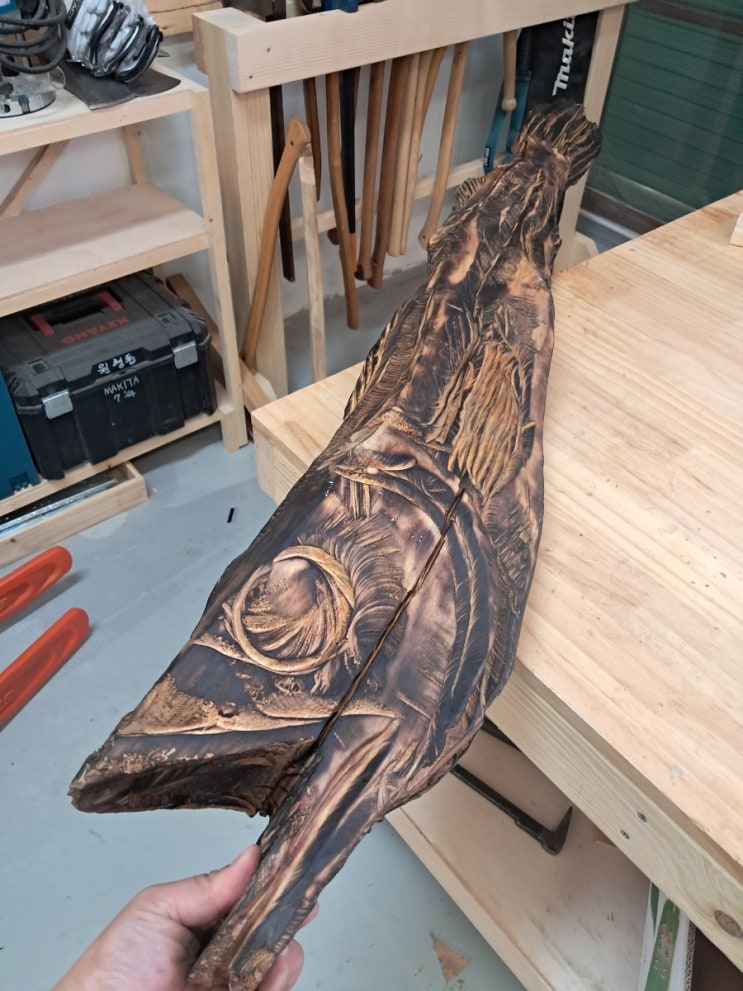 [도끼와거북이목공방] 북어 목조각 - 체인톱 조각