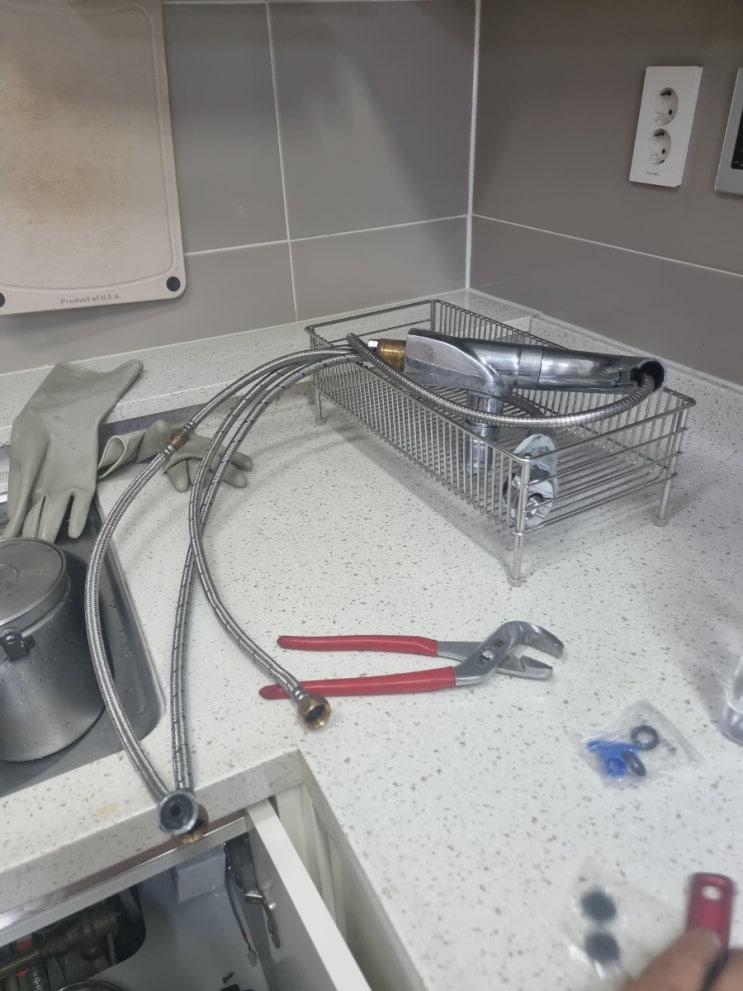 주방 수전 교체! 이게 뭐라고 왜 그렇게 버티고 있었나 수전 윗부분이 갈라지면서 물 틀면 분수처럼 솟구쳐...