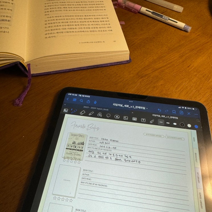 평소에 책 읽는 걸 좋아하다보니, 아날로그형 수첩도 많이 사용을 하고 있고 굿노트 다이어리 형식의 독서 ...