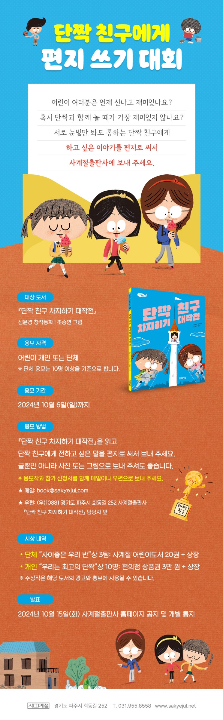 어린이 여러분 『단짝 친구 차지하기 대작전』 재미있게 읽고 좋은 친구 많이 만드세요! 단짝 친구에게 편...