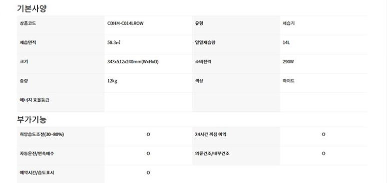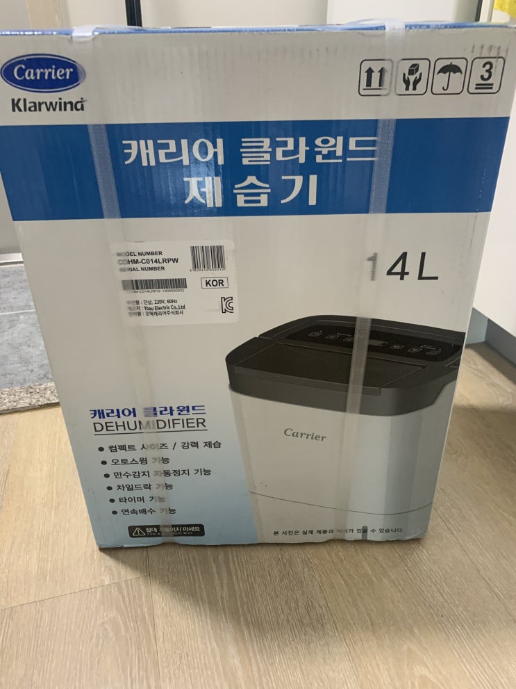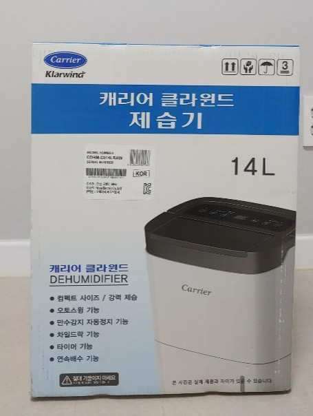 이번에 추천해드릴 것은 바로 캐리어 클라윈드 제습기 14L YCDHM-C014LROW 입니다. 상세사항 사용면적: 58.3㎡ 사용면적설명(평): 약 17평에 해당함 일일제습량: 14L 연속배수 가능여부: 연속배수 가능
