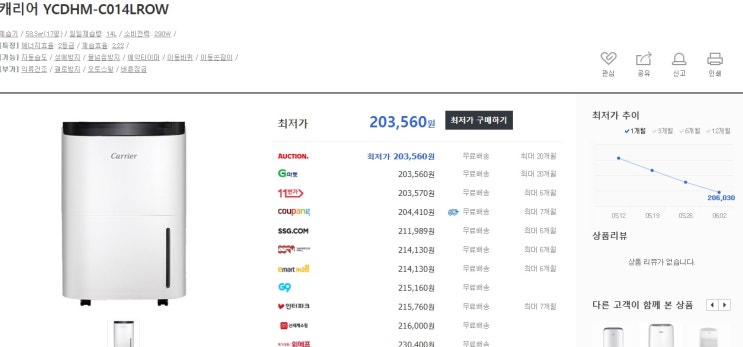 캐리어 클라윈드 제습기 14L YCDHM-C014LROW 최저가 가격 스펙