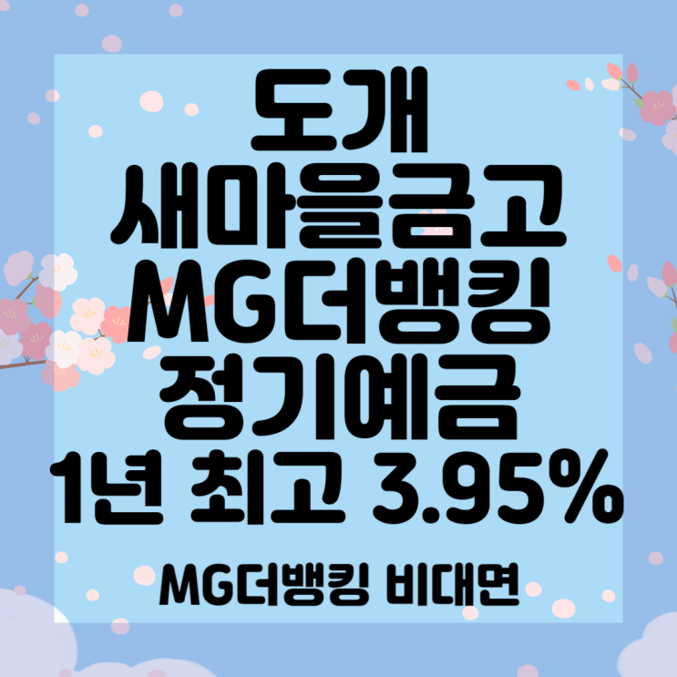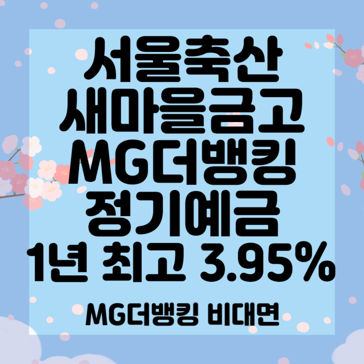 서울축산새마을금고 MG더뱅킹 정기예금 12개월 최고 3.95% 비대면 가능합니다 (경영실태평가 2등급) 8월 18일 기준