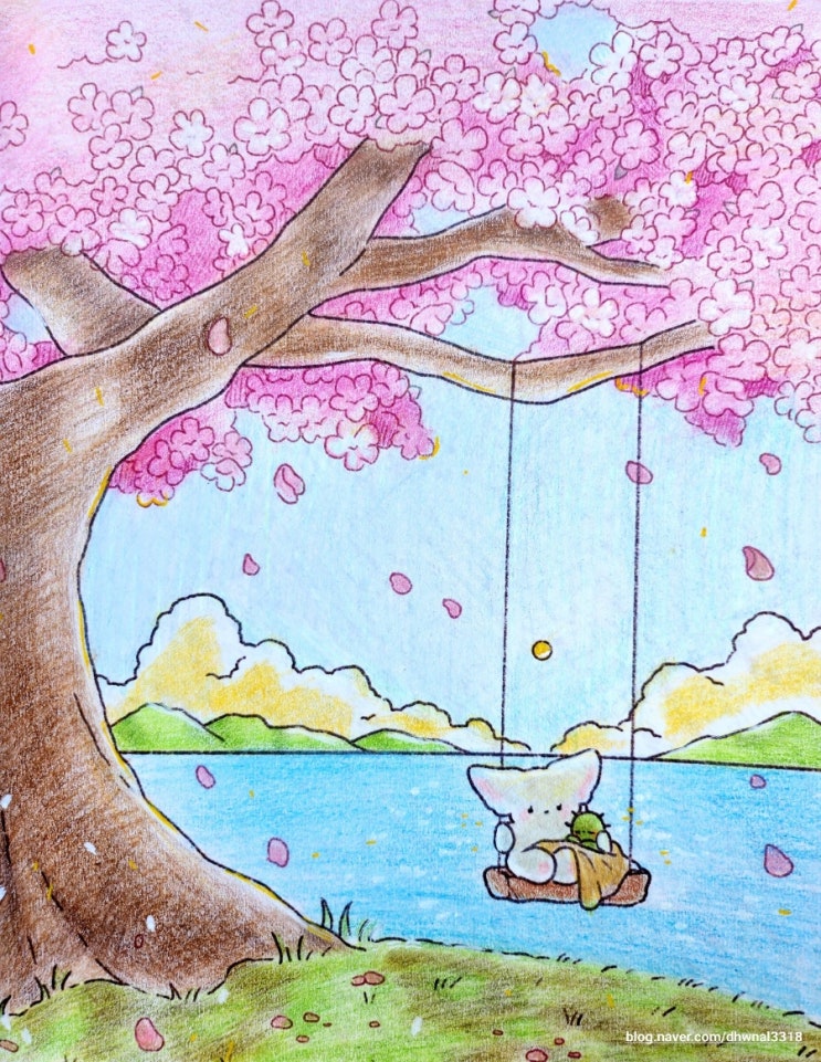 소금이 벚꽃 완성!! 벚꽃 너무 이쁘다~~ 소금이와 소소 기분좋아보인다^^ 나무그네~~ 넘 낭만적이다??...