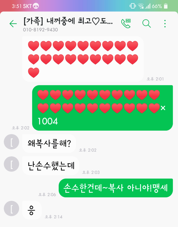 핸드폰에서 잠자던 4학년 아들의 문자