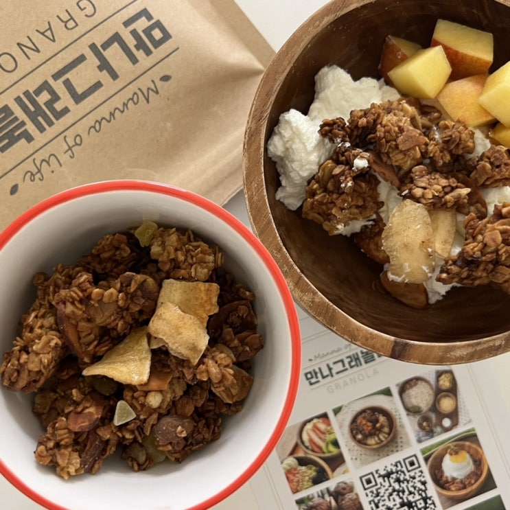 아침 식사로 간편하게 그릭요거트, 요거트볼 먹을 때 넣어 먹기 좋은 수제그래놀라 만나그래놀라 ? 달콤...