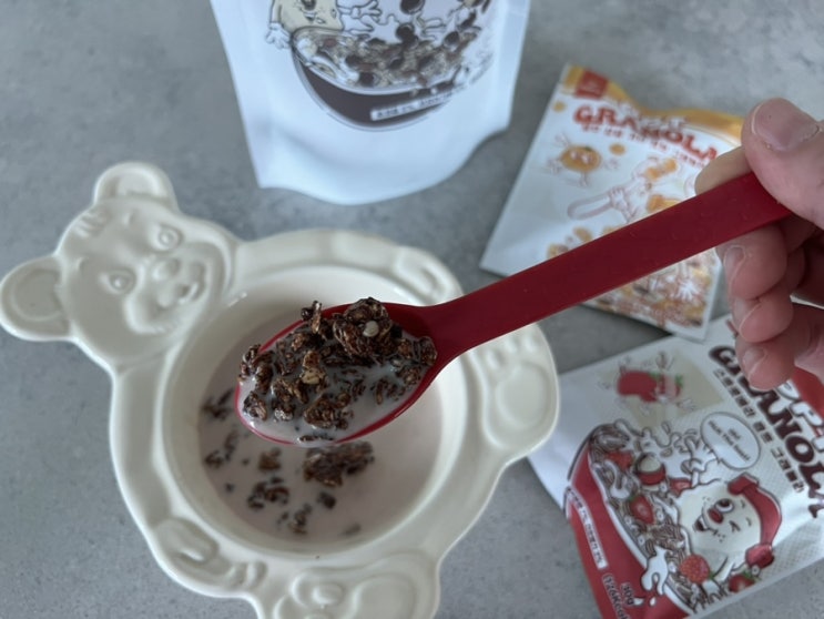 오늘의 간식으로 먹었던 초코맛 그래놀라 깊고 진한 초코맛의 바삭한 식감이 느껴지는 그래놀라였는데 넘 ...