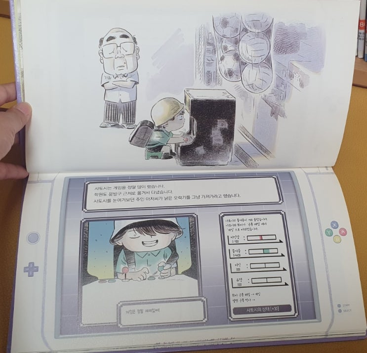 <게임개발자 타지리 사토시> 주인공 타지리 사토시의 능력치(자신감,즐거움,지식,우정)를 닌텐도 게...