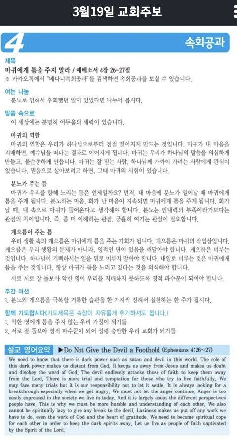 마귀에게 틈을 주지 말라/에베소서 4장 26절~27절