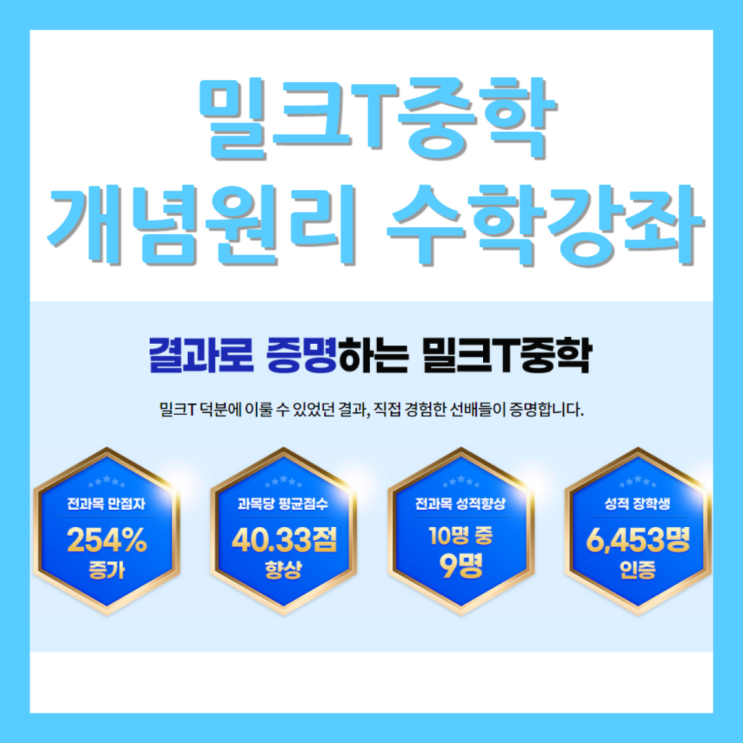 교과서 점유율 1위 밀크T중학의 개념원리 수학강좌로 중학교수학 마스터!