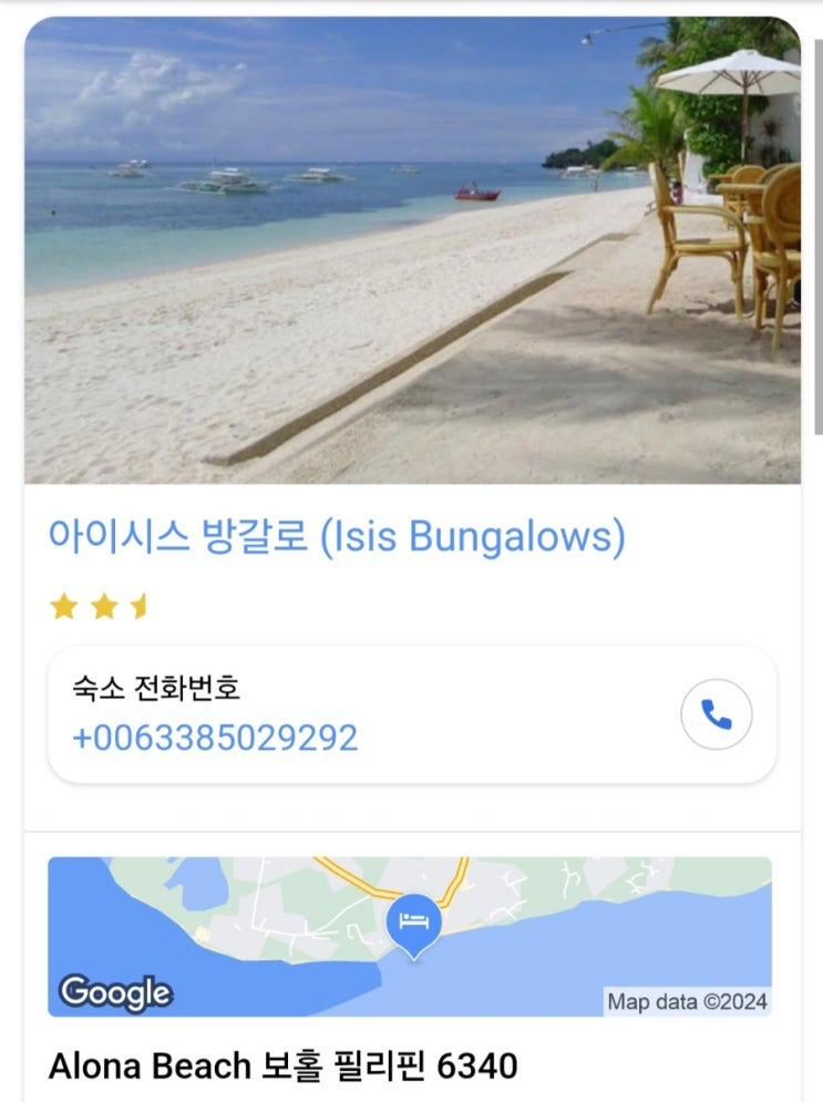 알로나 비치를 가까이서 느끼기 위한 최적의 숙소 아이시스 방갈로 위치는 알로나 비치 바로 앞 세븐일레븐...