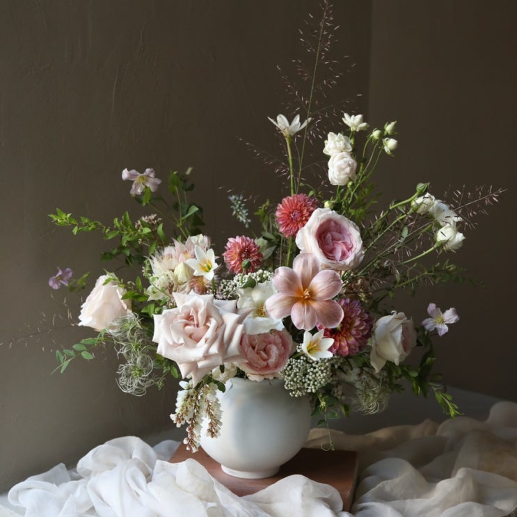 안녕하세요. 케이라입니다. 중급 a 반에서도 배우실 수 있는 달 항아리 화병 꽃이입니다. 외국인 인텐시브 ...