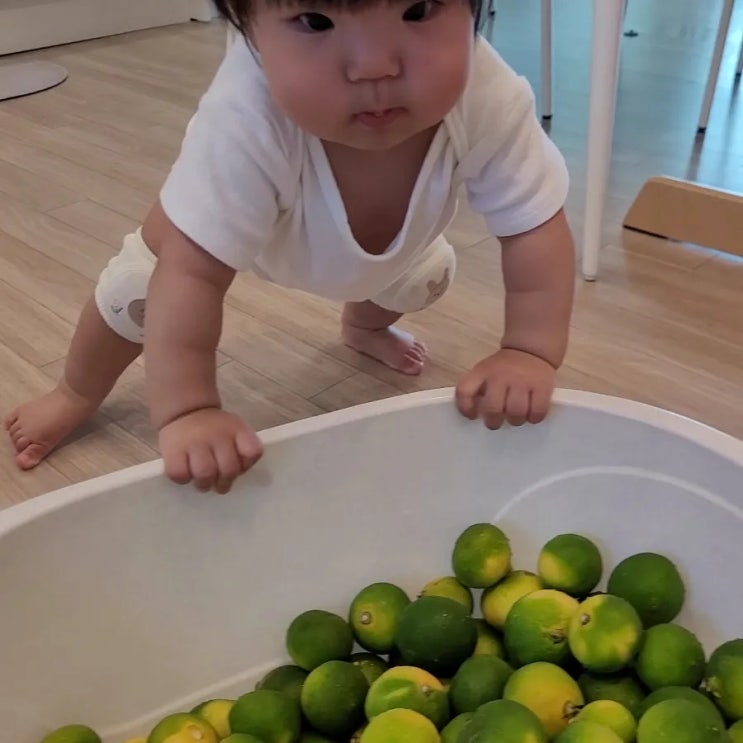 안녕하세요 홍시맘입니다 어제에 이어 오늘도 저희 집엔 아기 손님이 놀러왔어요 홍시보다 한달 정도 늦게 ...