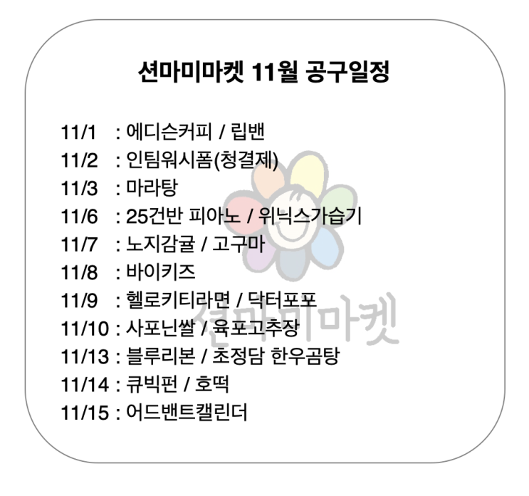 션마미마켓 2023년 11월 공구일정