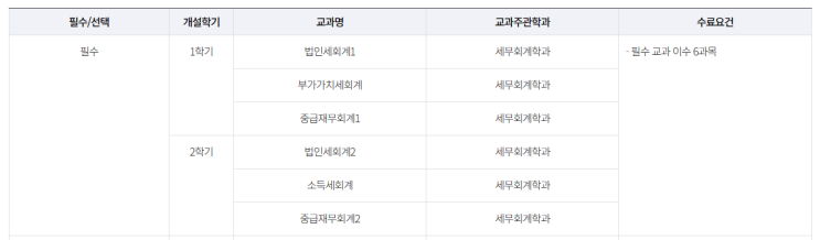 SDU 세무회계학과 수료증 필수, 선택과목 정리