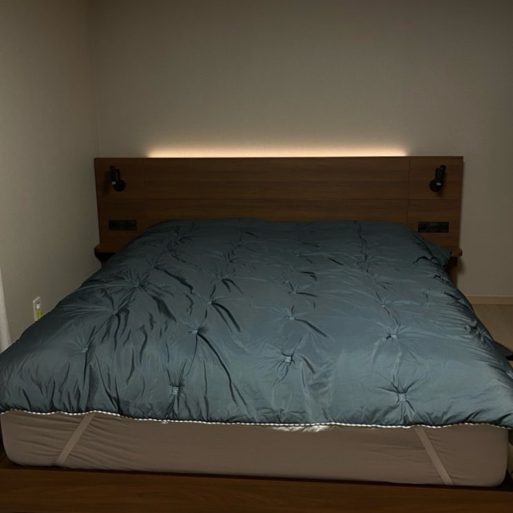 [내돈내산] 한샘 유로 503 월넛ㅣ헤나 매트리스 KK 사이즈ㅣ슬라운드 차렵이불 샌드 딥그린