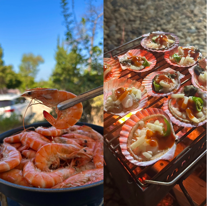 통영푸드팡팡 제철 흰다리새우와 홍가리비구이 캠핑음식 추천