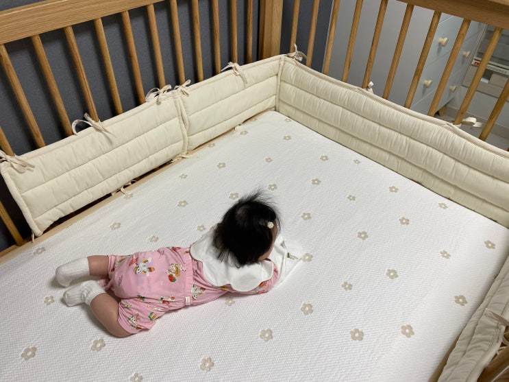 130일 쯤 아기가 뒤집기를 시작...!! 이제는 잘때도 뒤집어서 자기 시작했습니다. 아기침대에 눕혀 놨을 때...