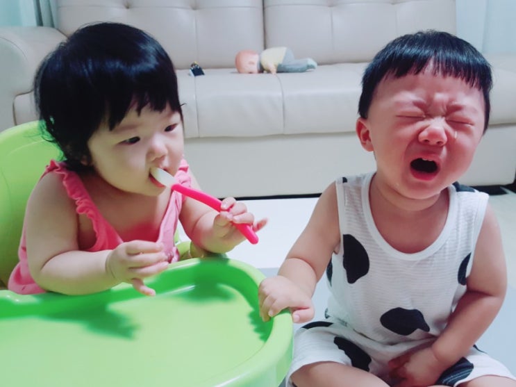 저녁시간은 늘 함께하는 둘 소현이는 이유식 승현이는 저녁맘마! 요즘 왜케 저길 그렇게 들어가는지 자기만...