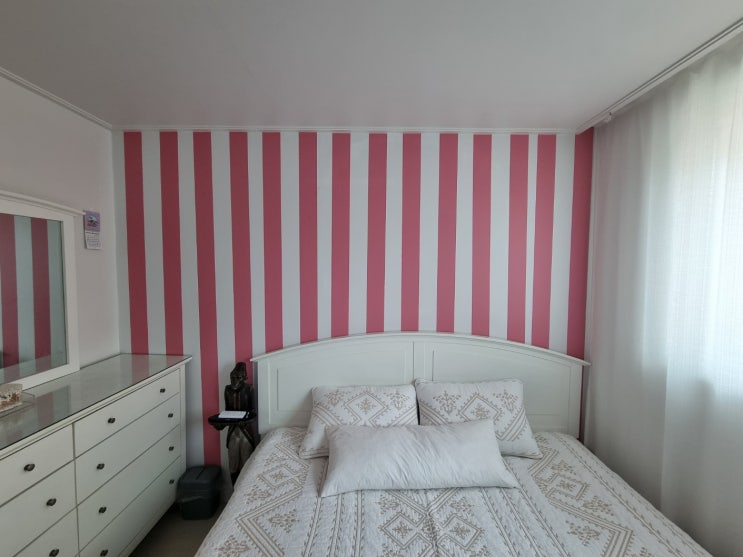 스티커벽지, 셀프접착식벽지, 핑크스트라이프벽지, 붙이는벽지, 테무벽지 시공후기 2탄