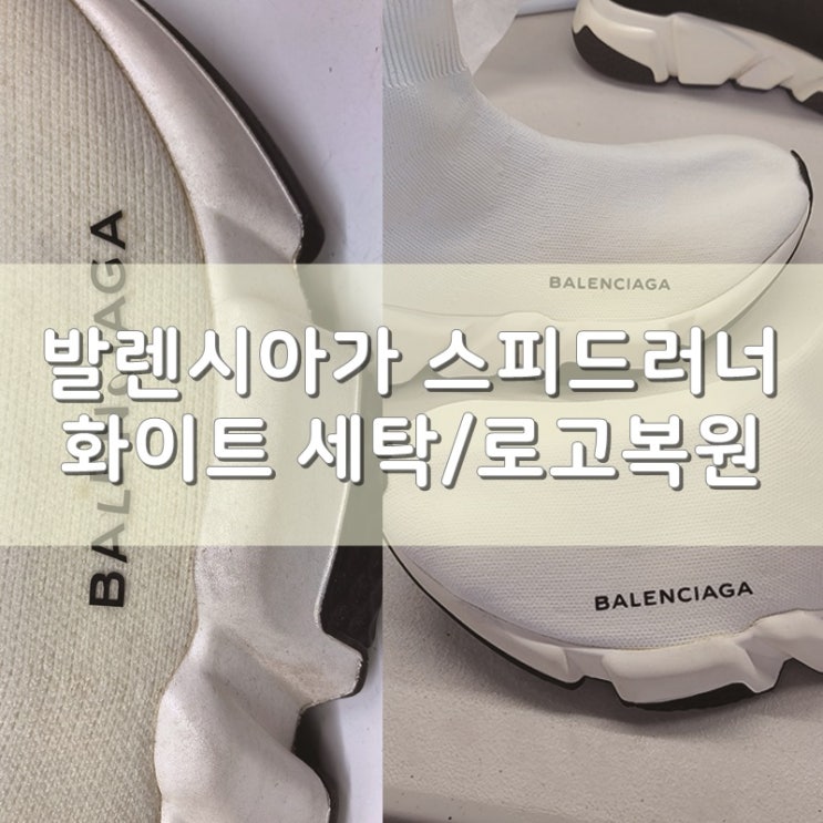 발렌시아가 스피드러너 화이트컬러 세탁과 로고복원까지! 세탁솔루션 명품세탁
