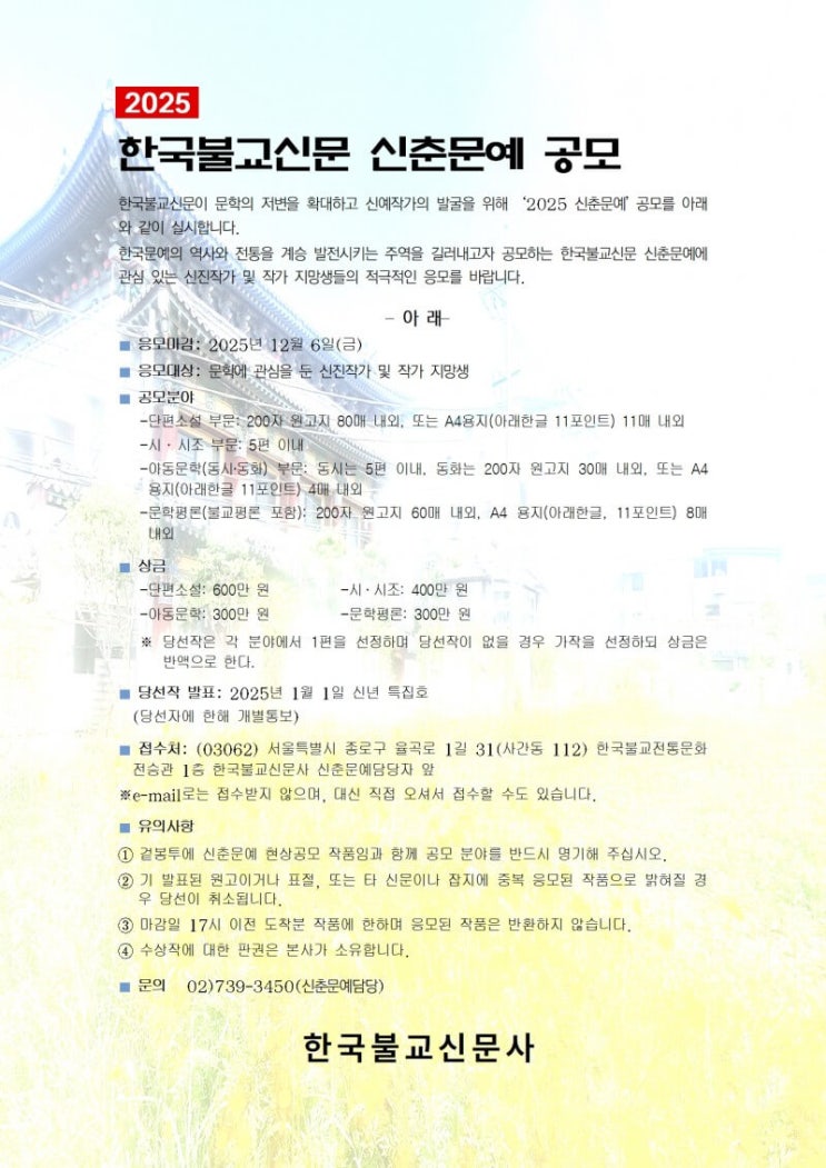 #문학공모 #신춘문예 #한국불교신문 #2025 2025 한국불교신문 신춘문예 공모 한국불교신문이 문학의 저변을...
