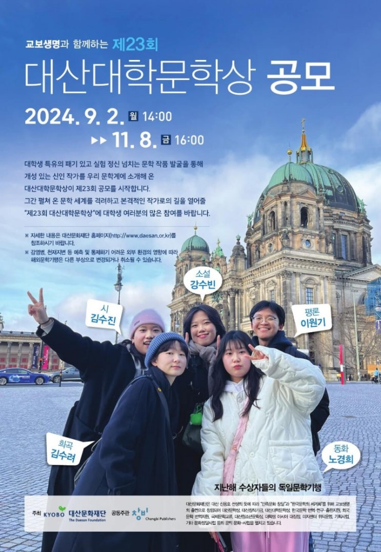 <문학공모> 제23회 대산대학문학상 공모 2024년 11월 8일까지