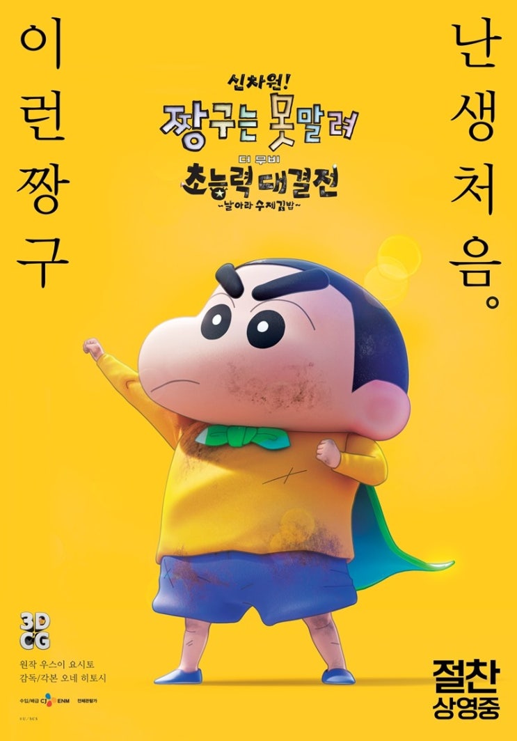 어제 써니랑 이번에 나온 짱구 영화를 보고 왔어요. 제가 원래 짱구를 좋아해요. 요런 b급 감성도 좋아하고...