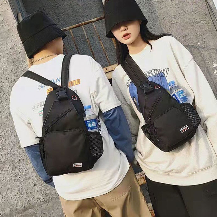 투웨이 포켓 슬링백팩 남성 여성 물병 핸드폰 소지품 크로스백 여행 버클 가방 슬링백