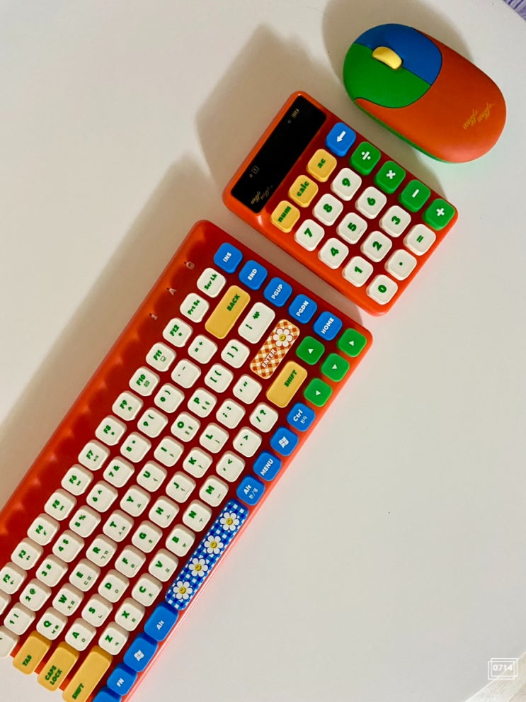 먹보라덕입니다 :) 생일선물로 귀여운 키보드 마우스 세트를 받았어요. 위글위글의 키치한 디자인과 알록달...