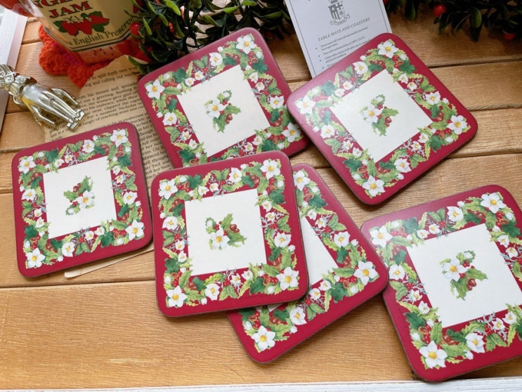 1970’s 영국 빈티지 Royal Table Coaster Set(포인세티아 갈랜드) 6개