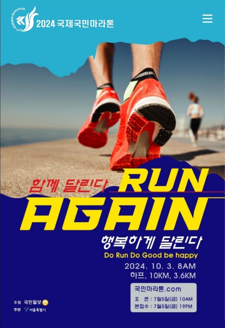 2024 국제국민마라톤 2024.10.03. (목) ~2024.10.03. (목) 사전등록기간 2024.07.05. (금) ~2024.09.03. (...