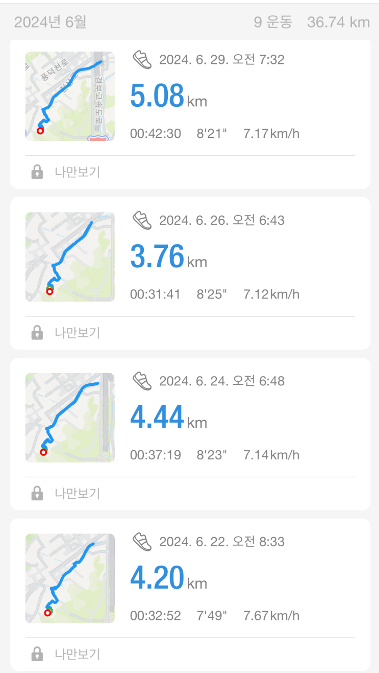 [2024년 7월 런닝 기록] 40대 초보의 아침 달리기 (feat. 엄마는 어떻게 새벽 6시에 일어나서 달릴 힘이 솟아?)