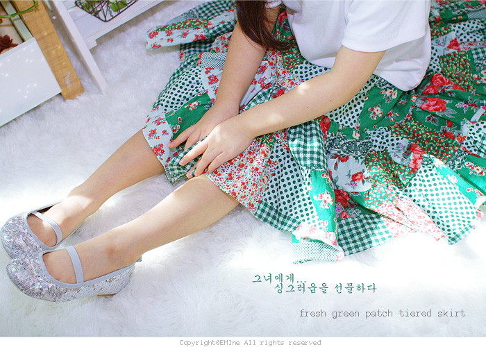 봄패션으로 이만한게 없어! - 그린패치 티어드 스커트(애미네샵/선퀼트원단/엘나7100)