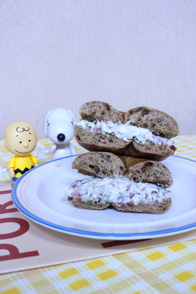 그릭요거트샌드위치 베이컨쪽파그릭요거트크림 베이글요리