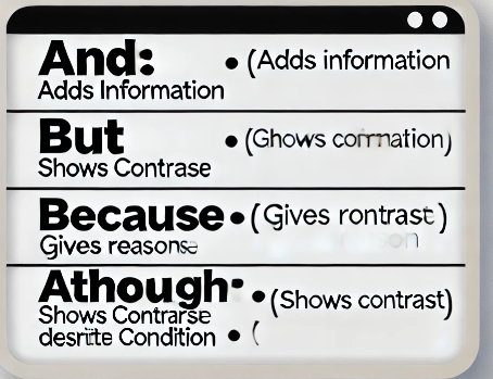접속사and, but, because, although역할 및 차이점
