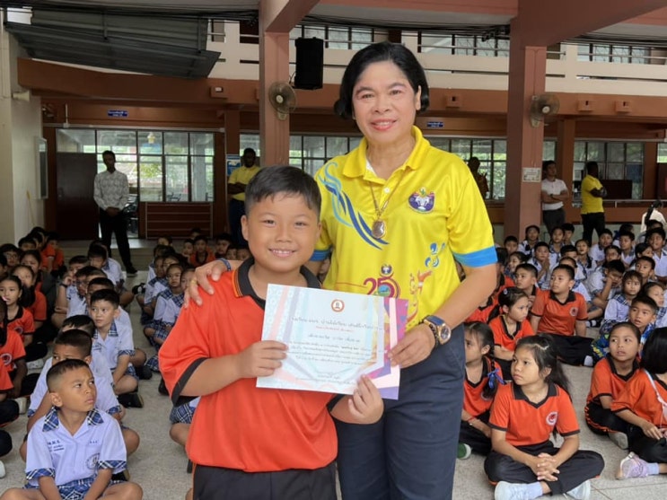 정확하게는 모르겠으나 영어 스펠링 관련 해서 상을 탔단다. 태국 학교에서 주는 상은 내가 잘 모르니, 설...